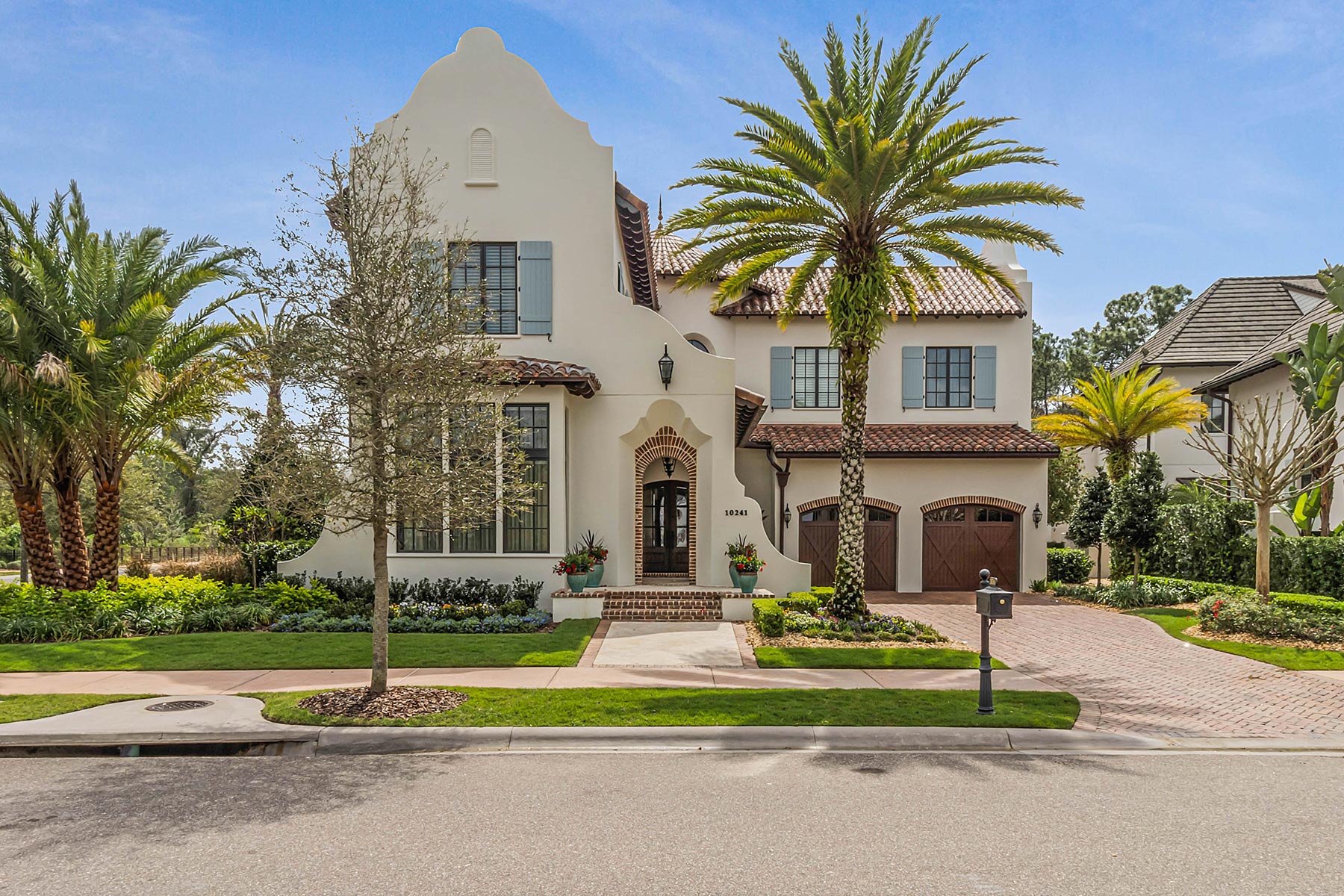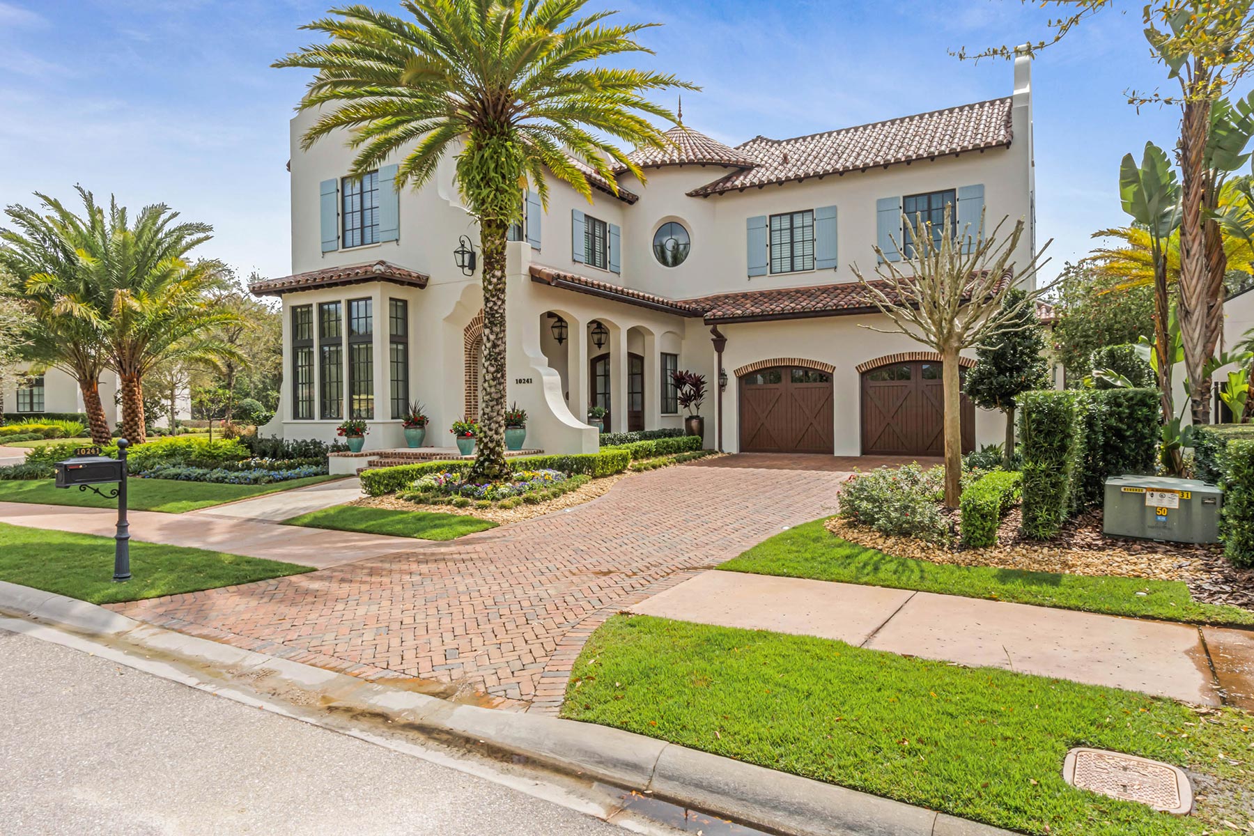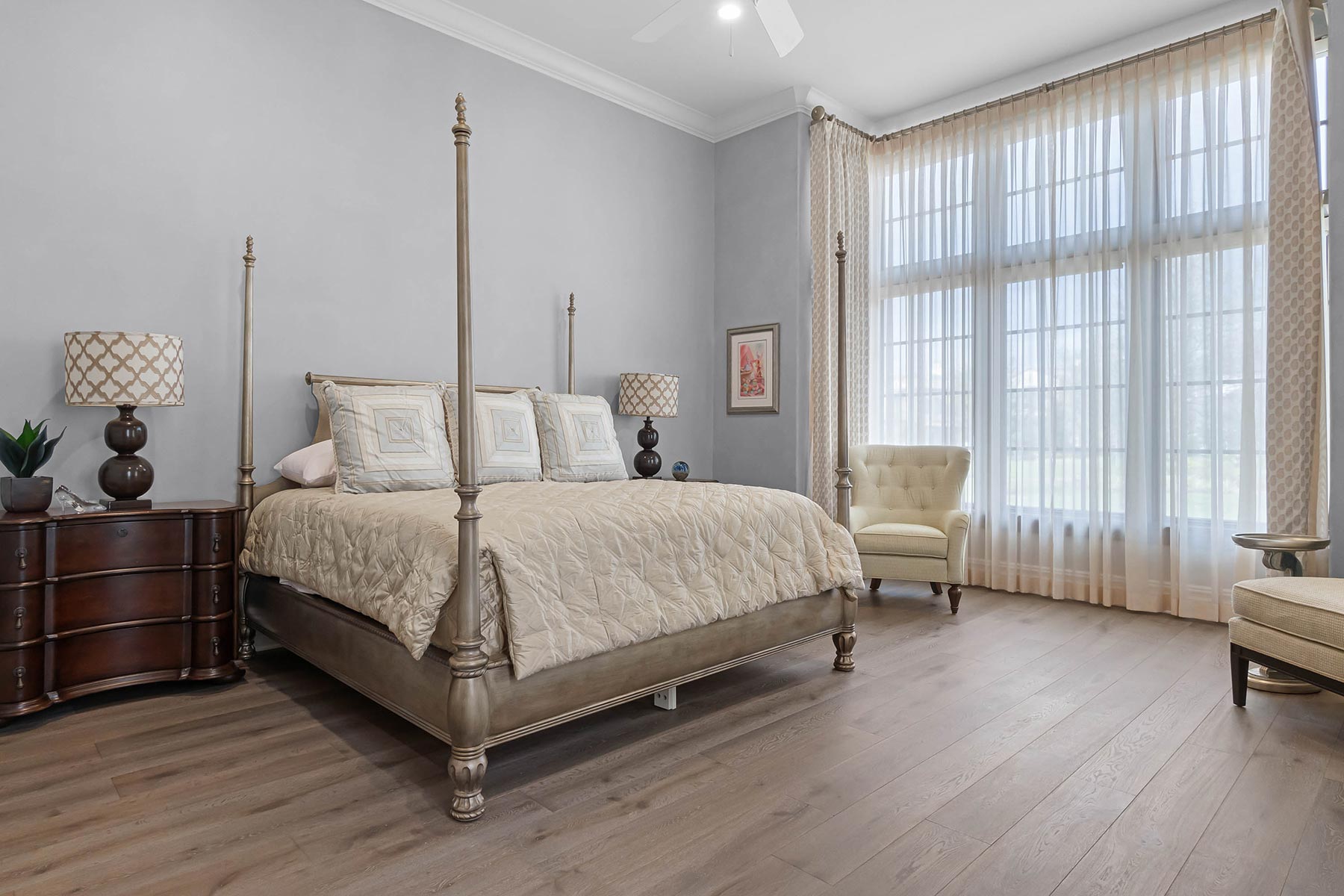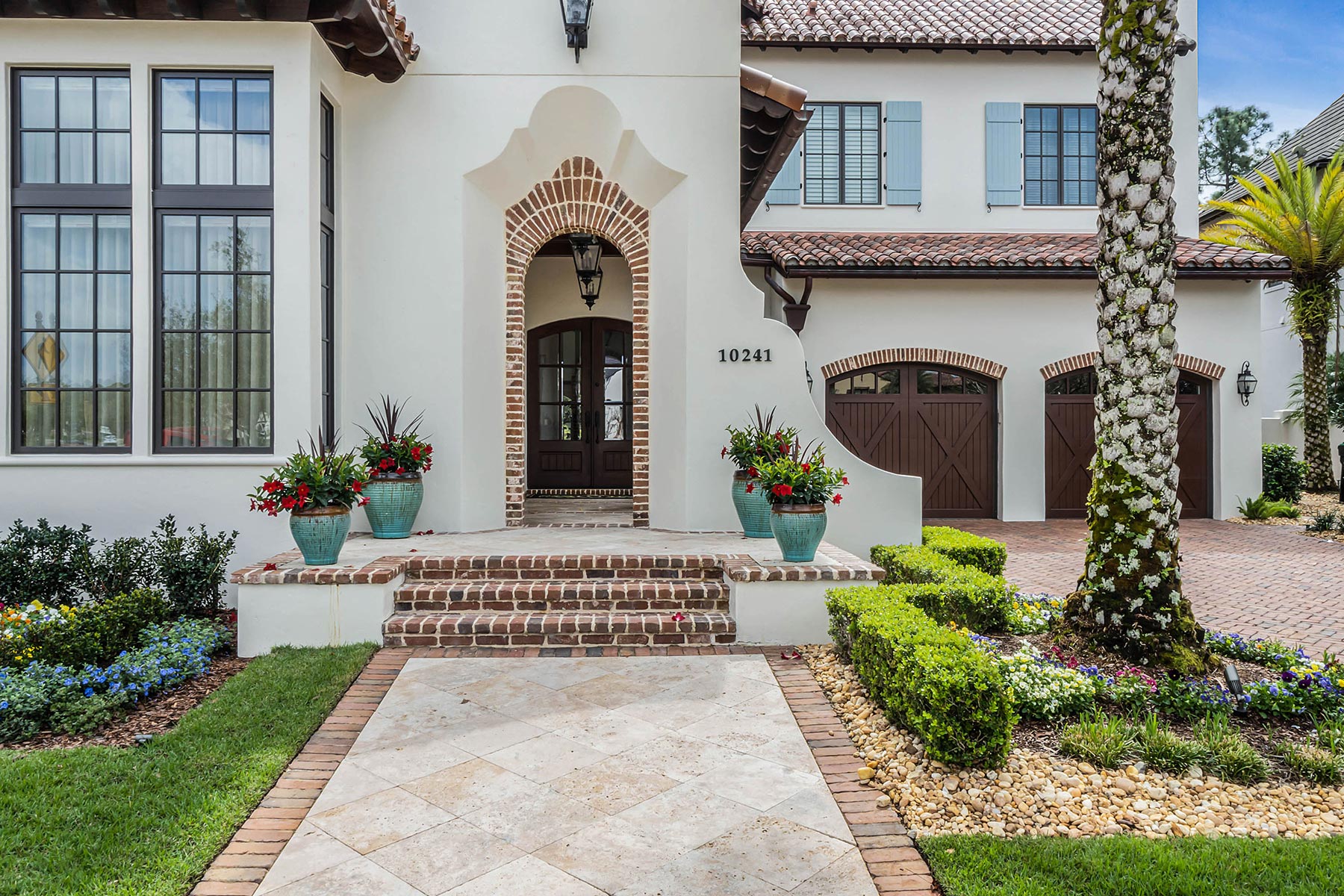 Other details involved with the renovation included a stunning wagon-wheel ceiling coffer over new dining room with hand-painted details, a whole-house audio system, a new bar & temperature controlled wine-room with custom cabinets and englameze detail on backsplash of bar and corking counter in wine room. The corking room features a custom antique window and a lounge-groove groin ceiling with a 4-way gothic arch. The staircase was fitted with a custom baluster and a curved glass window underneath that looks into a new library featuring custom built-ins.