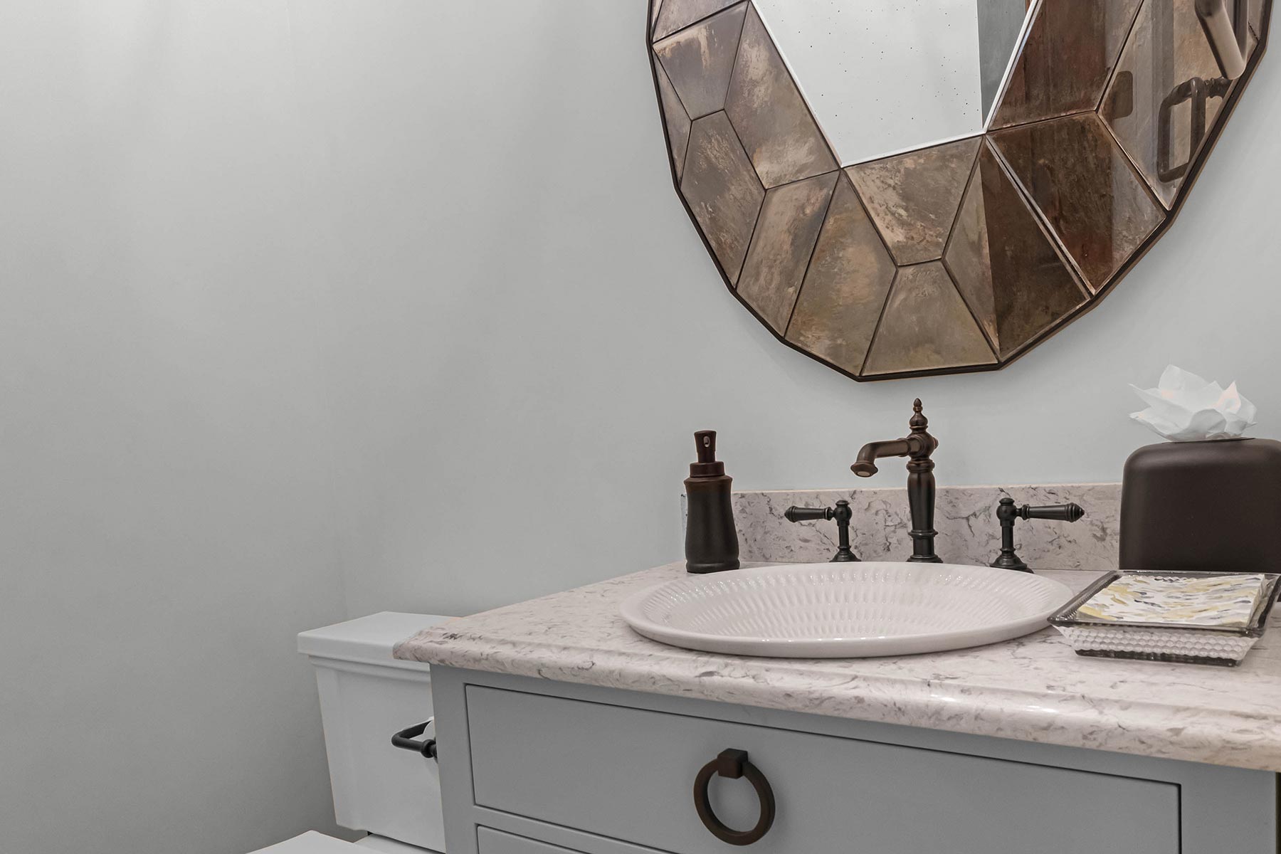 Throughout the project, special attention was given to blend the new space seamlessly with the existing. For example, the new dining room features a vaulted ceiling and open concept so it feels like original construction. Even the flooring was carefully matched with similar travertine and an alternate pattern to help define the separate space while keeping it connected to the open concept.
