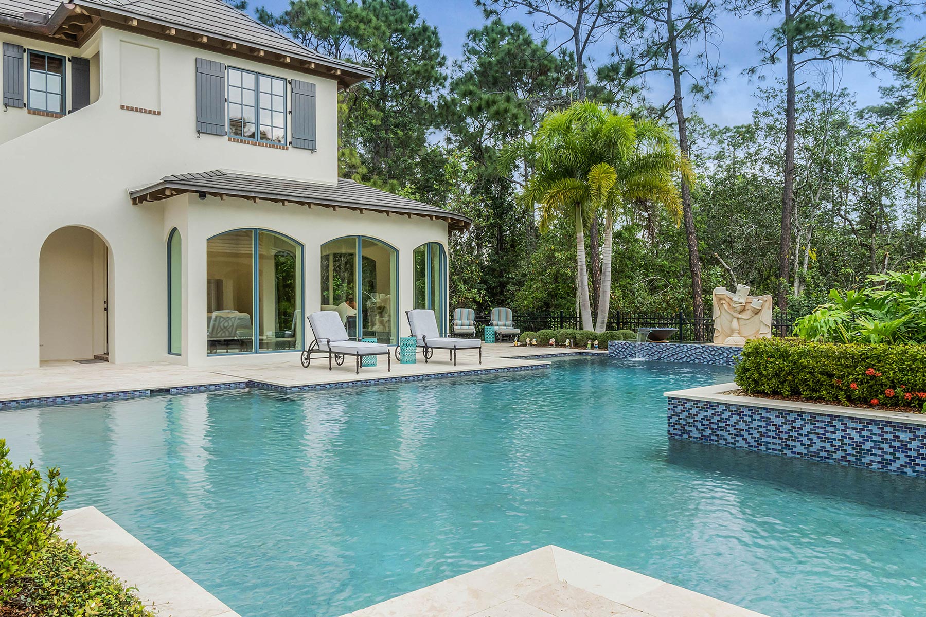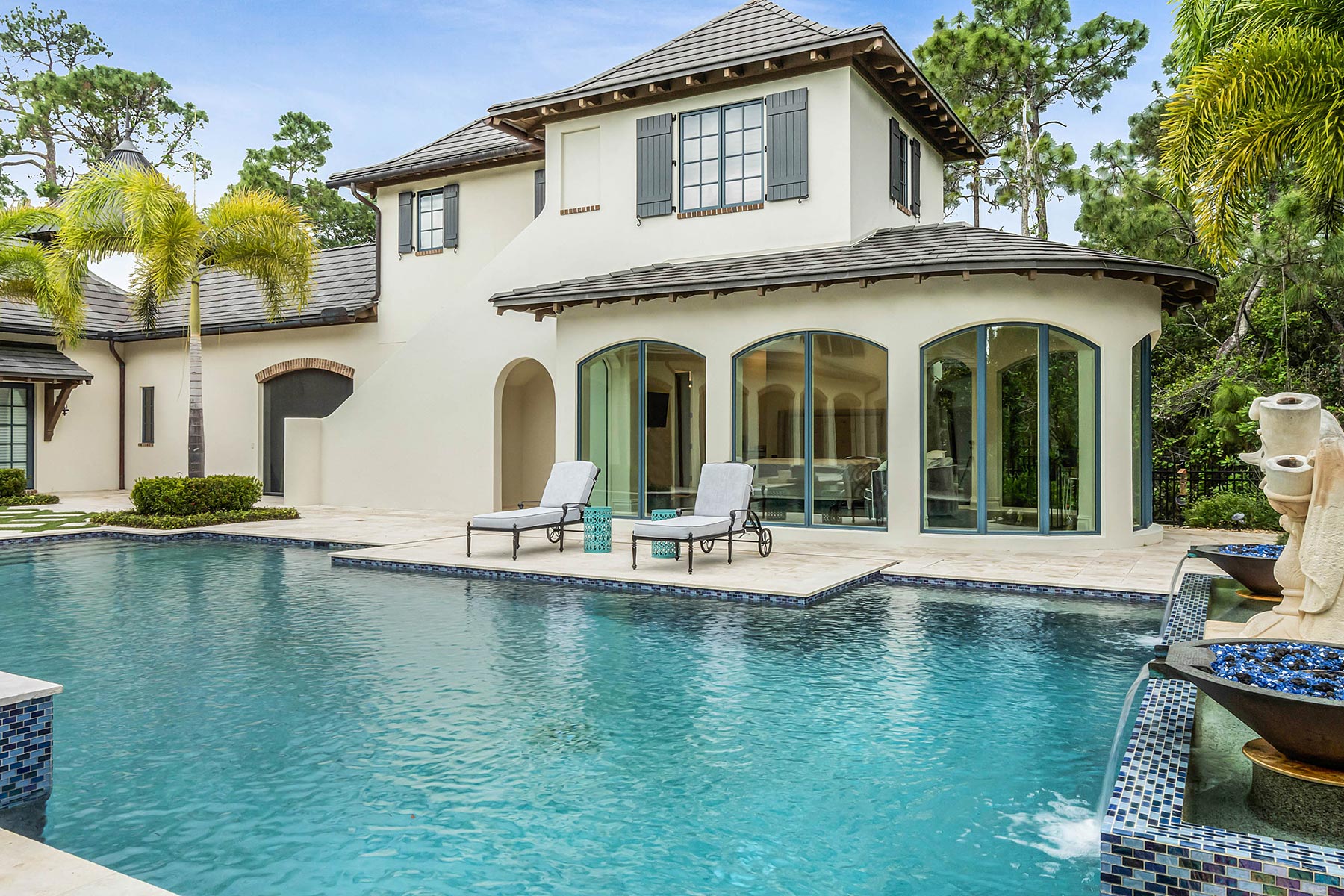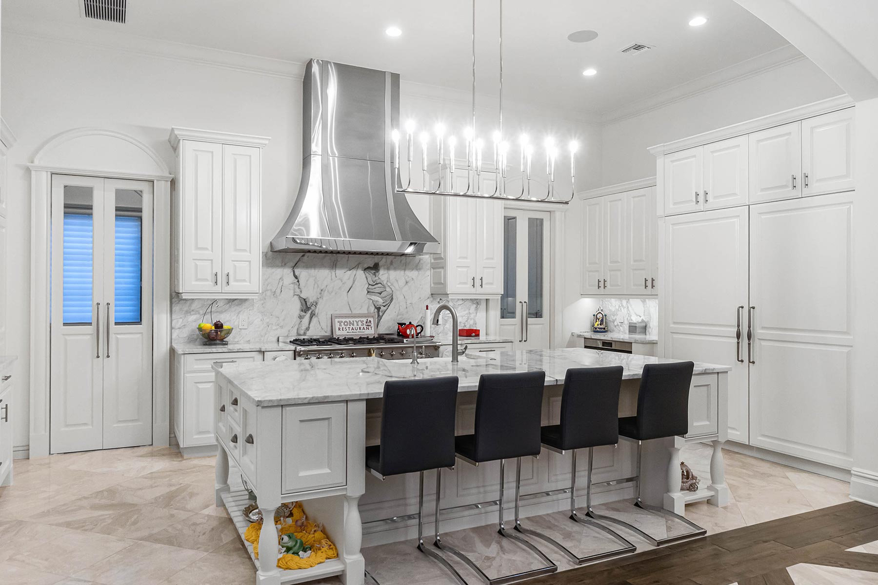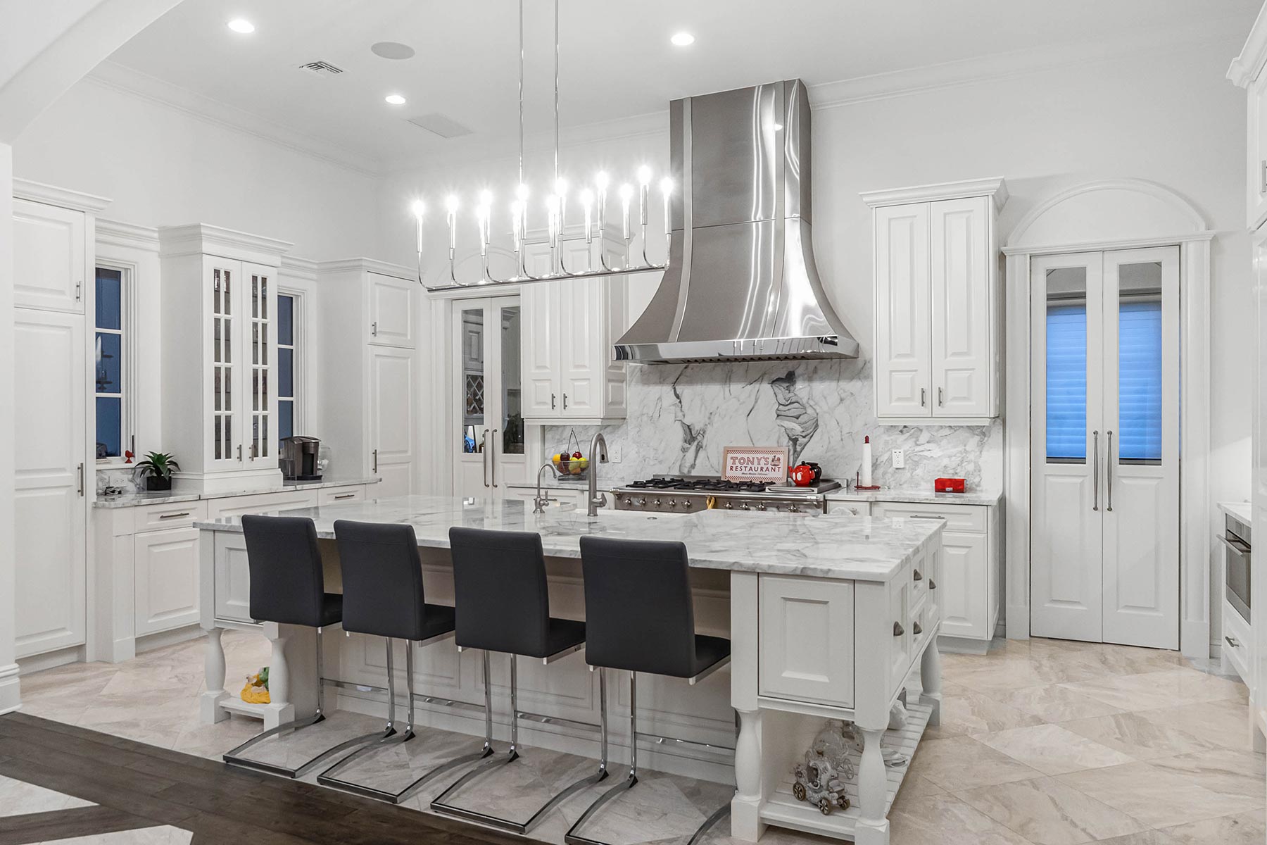 TotalCare Orlando completed a beautiful renovation on this gorgeous home in Golden Oak. The project involved several changes to the home: Converted a covered porch to living space with new custom arched windows Expansion to the pool house casita Repair and expansion to patio pavers and refreshed landscaping Bathroom renovation with custom cabinets, custom millwork, custom tile, full-slab shower tile Remodeled the kitchen with brand-new countertops, new light fixtures, a new custom hood, and a fresh coat of paint for the cabinetry and walls Converted a utility area to a stunning, temperature-controlled walk-in wine cellar with custom cabinetry and lighting Remodeled a walk-in closet with new millwork Installed a large custom built-in with rolling ladder