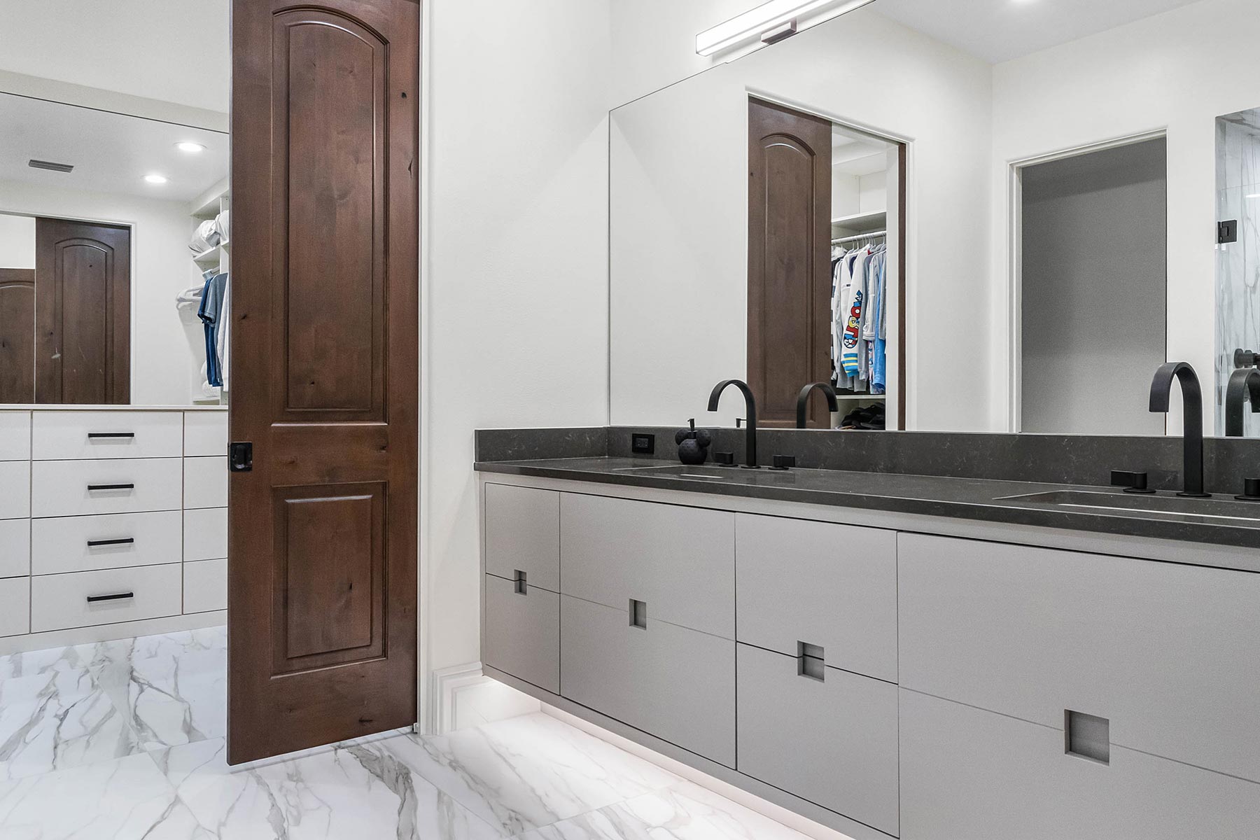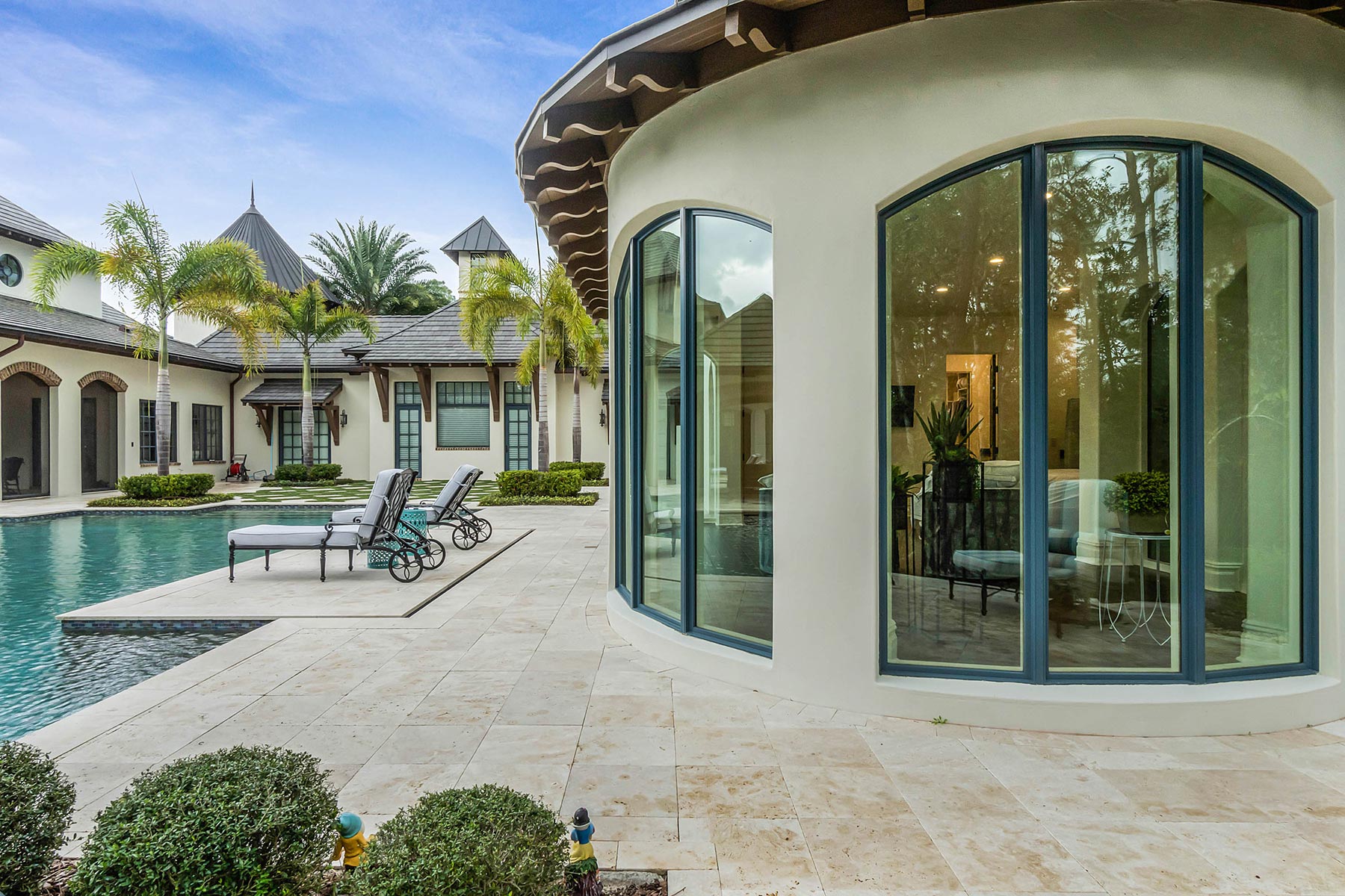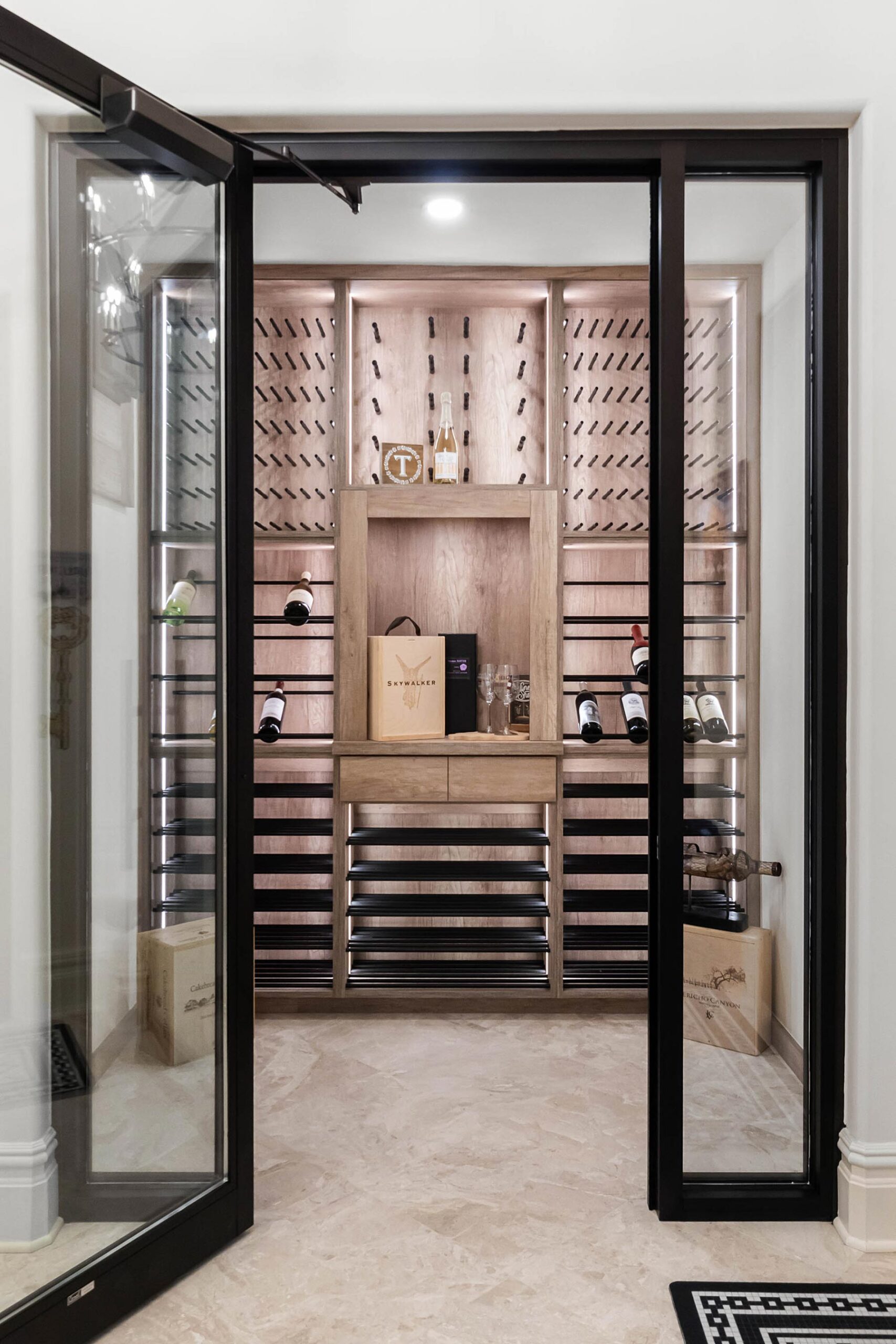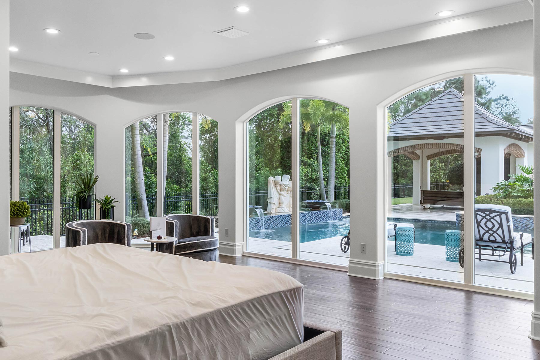 TotalCare Orlando completed a beautiful renovation on this gorgeous home in Golden Oak. The project involved several changes to the home: Converted a covered porch to living space with new custom arched windows Expansion to the pool house casita Repair and expansion to patio pavers and refreshed landscaping Bathroom renovation with custom cabinets, custom millwork, custom tile, full-slab shower tile Remodeled the kitchen with brand-new countertops, new light fixtures, a new custom hood, and a fresh coat of paint for the cabinetry and walls Converted a utility area to a stunning, temperature-controlled walk-in wine cellar with custom cabinetry and lighting Remodeled a walk-in closet with new millwork Installed a large custom built-in with rolling ladder