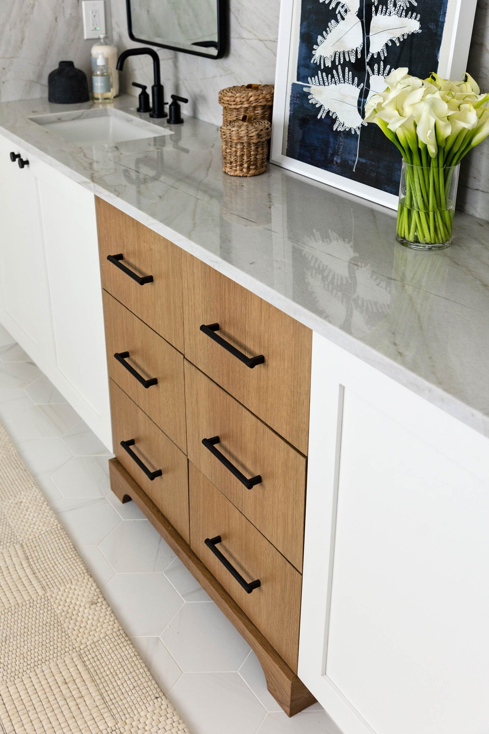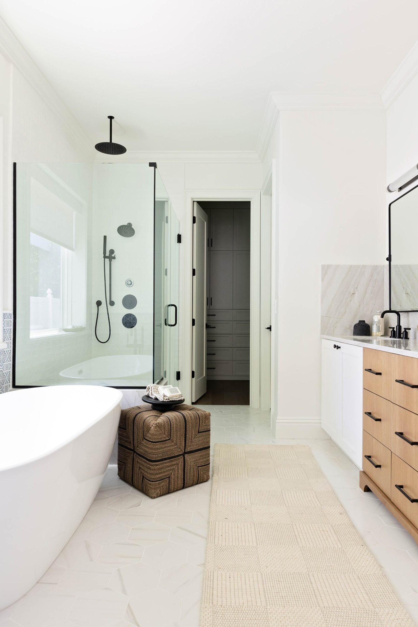 TotalCare recently renovated this lovely home in Winter Park, FL with a gorgeous new kitchen, master bath, and master closet. This major home renovation involved gutting the kitchen and bath down to the studs and rebuilding the interiors brand-new. The kitchen renovation features custom cabinets and millwork, a porcelain farmhouse sink, quartz countertops, all-new appliances, a custom range hood, an innovative pull-out coffee bar, and brand-new light fixtures. The renovation also involved all new flooring for the kitchen and living room, as well as some living room touches such as shiplap around the fireplace, new trim work, and painting. The master bath renovation includes a new frameless shower enclosure with dual shower head & rain head, a stunning free-standing tub, a custom vanity with quartz countertops & backsplash, designer mosaic tile, and brand-new windows with motorized shades. The new master closet features extensive furniture-grade built-ins with drawers, shelves, and cabinets for organization.