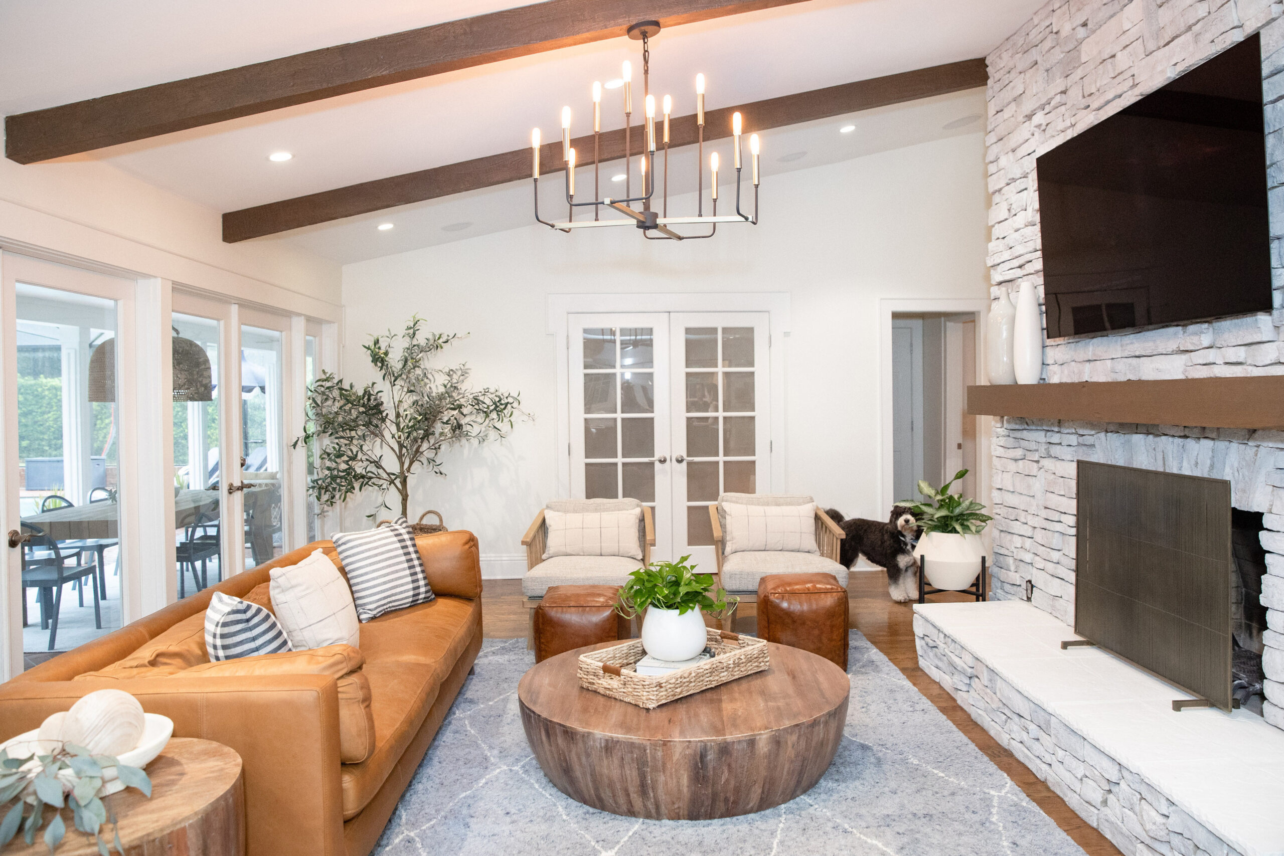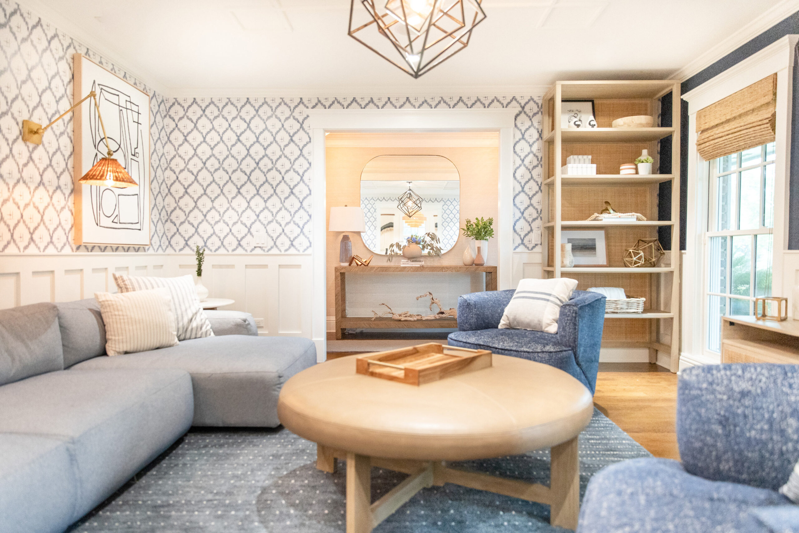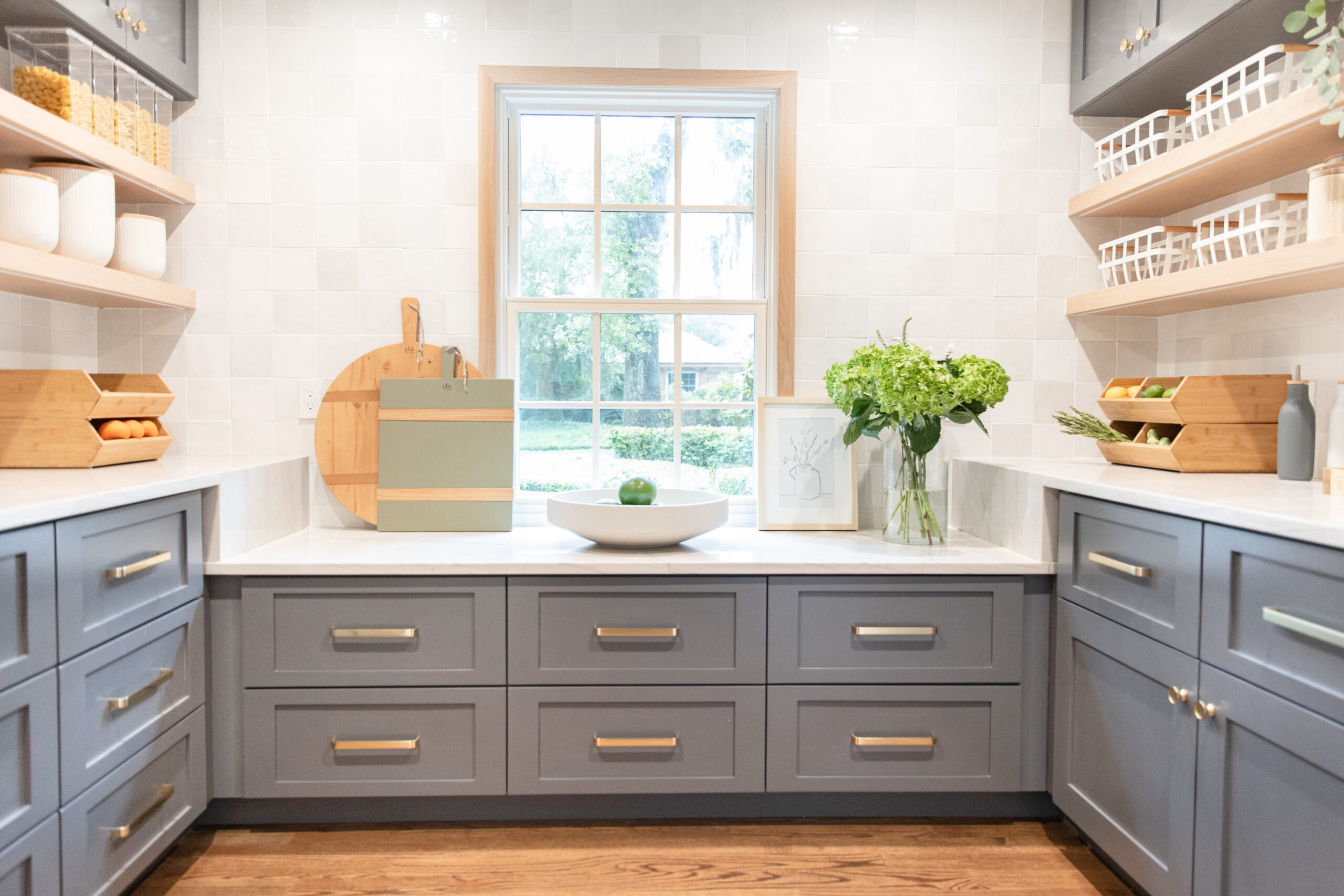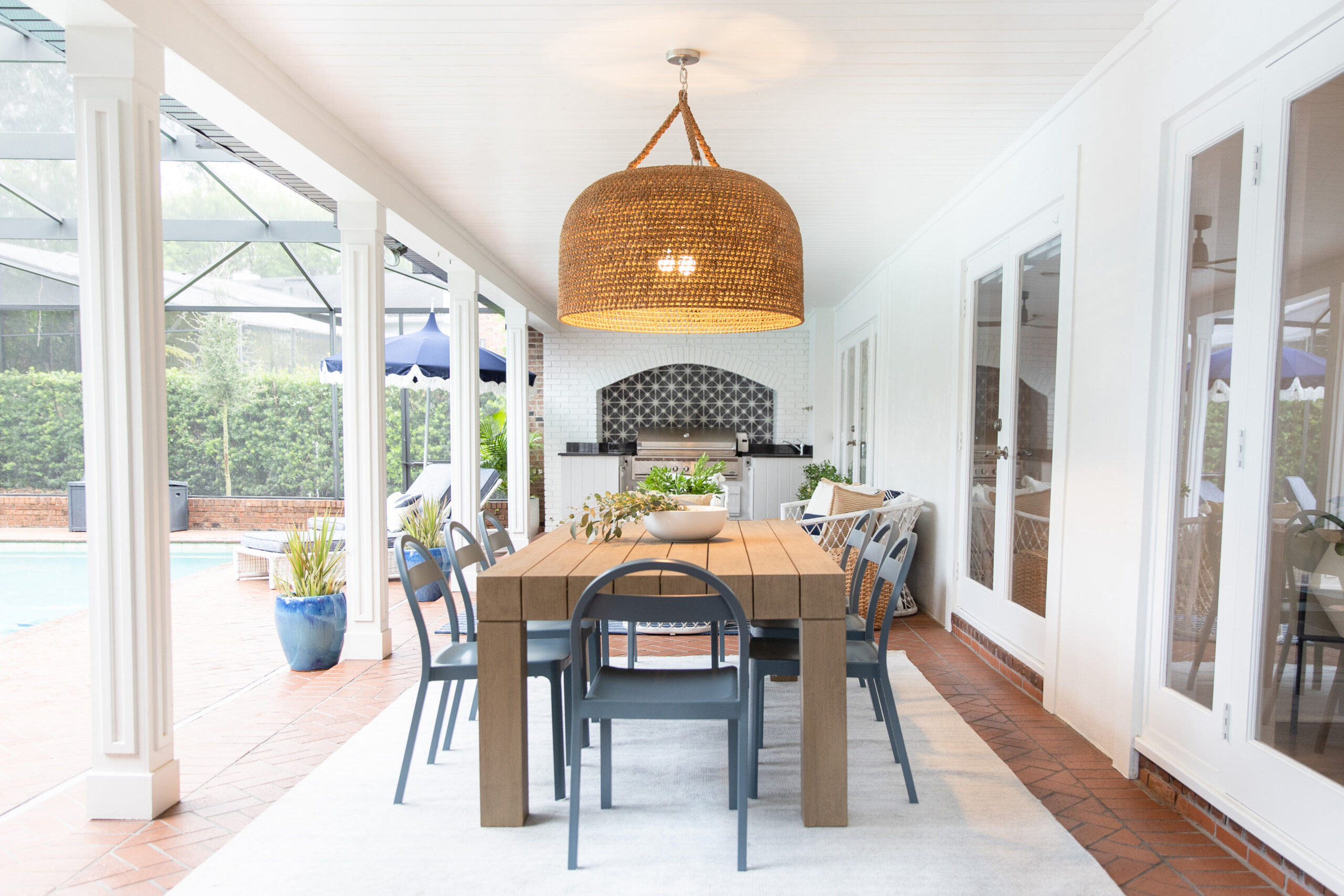 This Winter Park renovation featured a small addition to the home’s footprint as well as significant updates to interior spaces. Expanding and enhancing the kitchen and dining space were top priorities for the owners, who are both chefs. Central to the project was the addition of a large, walk-in pantry with built-ins and windows. Because this area expanded the footprint of the house, TotalCare paid careful attention to matching the new brick, shutters, windows, and landscaping with the existing exterior of the home. On the interior, TotalCare knocked out a wall to open up the kitchen to the dining room. Existing hardwood floors were sanded and stained to blend perfectly with new sections of the floor. In the kitchen, new countertops and backsplashes were installed while all cabinets were repainted and dressed with new hardware. The new pantry features a wet bar, custom cabinets, and beautiful floating shelves with recessed LED strips to provide plenty of light. Interior work continued throughout much of the living space with lots of cosmetic updates including updated wainscoting in the living room, a new window in the dining room, custom mill work, and fresh paint and wallpaper throughout. The renovation also featured a new summer kitchen with a large built-in grill, a new tongue-and-groove ceiling, and new electrical fixtures.